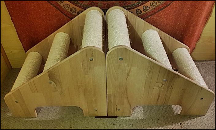 hat wieder 2 Klimmtreppen für Kitten und Jungtiere gebaut. Stehen